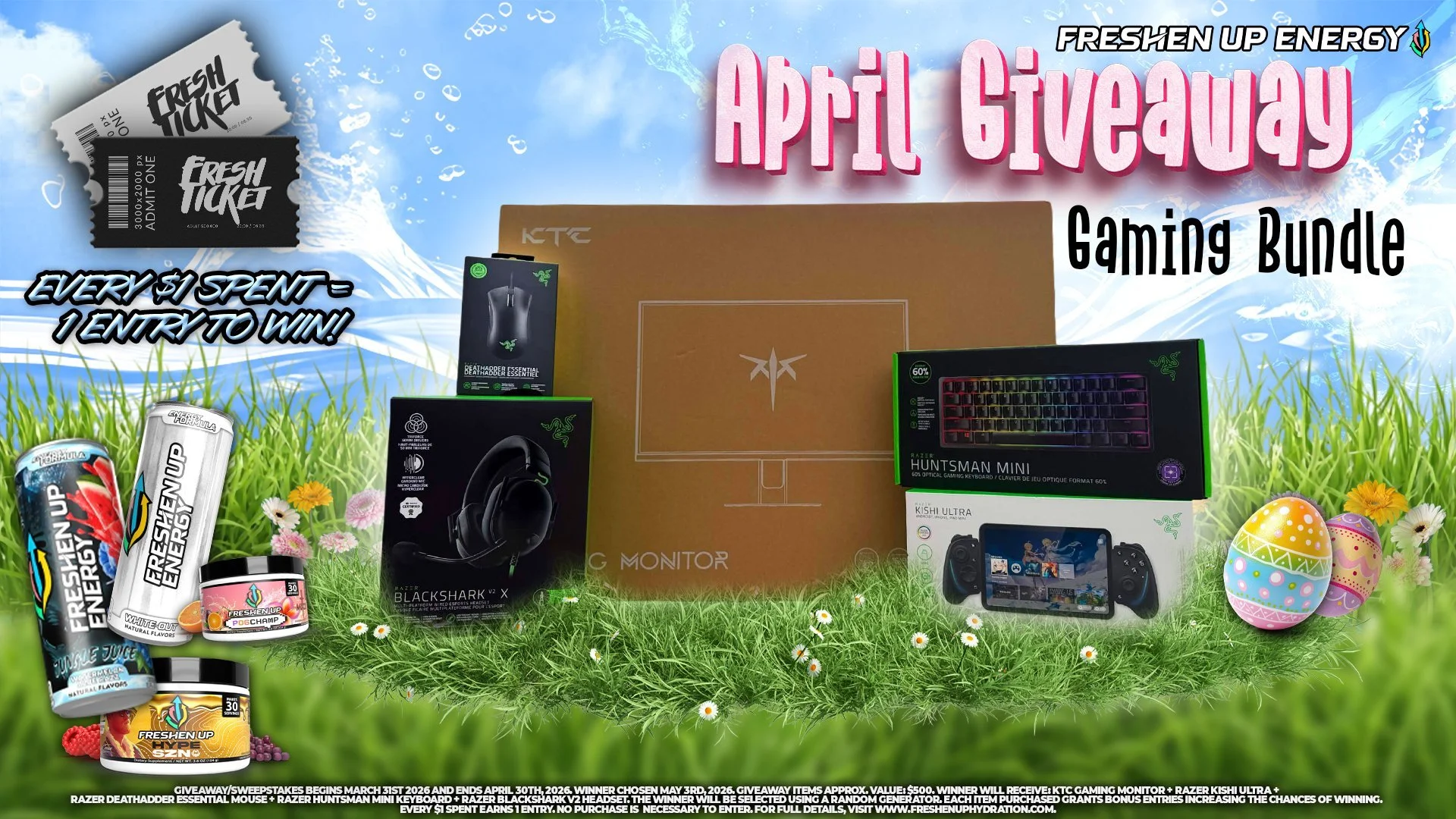 Giveaway/Sweepstakes begins 3/31/26 and ends 4/30/26 Winner chosen around 5/5/26 giveaway items approx. value: $500. winner will receive: KTC 1440p GAMING MONITOR, RAZER HUNTSMAN MINI KEYBOARD, RAZER KISI ULTRA (IPHONE+ANDROID), RAZER BLACKSHARK V2 X HEADSET, & RAZER DEATHADDER ESSENTIAL MOUSE