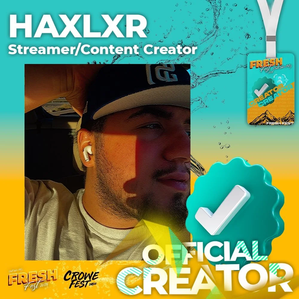 LIVE MUSIC ✘ VIP LOUNGE ✘ FOOD TRUCKS ✘ PRIVATE CAR SHOW ✘ CREATOR BADGES ✘ CROWE FEST 2026 ✘ EXCLUSIVE EVENT FLAVOR ✘ MEET & GREET ✘ FRESH FEST 2026 ✘ VENDORS ✘ PHOTO OP ✘
